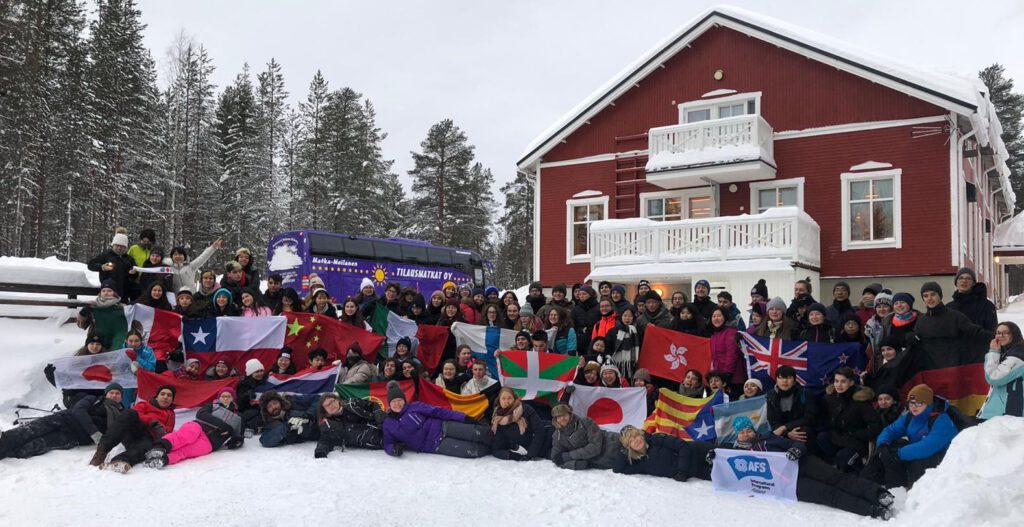 Zudem bietet AFS in Finnland für Austauschschüler eine Fahrt nach Lappland an. Ich war dort Anfang Februar, wer hätte gedacht, dass wir dort schon erfuhren, dass die ersten Austauschschüler aus China nach Hause geschickt worden waren, wegen der Pandemie. Die Fahrt ging über 6 Tage. Wir waren in Kairosmaja, was nochmal ein Stück höher, als Rovaniemi ist. Es war nie wärmer als -15°C. Die 6 Tage waren im Durchschnitt -20°C. Es war wirklich eine super Erfahrung „Avanto“ zu machen. Ja, wirklich, ich liebe Eistauchen. Auch du solltest es bei Gelegenheit versuchen. Die Sauna hat so zwischen 95 und 100°C, das fühlt sich jedoch nicht mehr so heiß an, wenn man erstmal bei -20°C mit den Flip Flops draußen ist. Vergiss niemals deine Flip Flops nach der Sauna um zum zugefroren See zu gehen. Die einzige Gefahr ist, dass dir deine Haare abbrechen, so wie mir das eine Mal. Einmal mit der Hand dagegen gekommen und schon hält man eine Haarsträhne in der Hand! In Lappland waren wir ungefähr 100 Austauschschüler von überall her. Ich teilte mir ein Zimmer mit meinen besten Freundinnen, da wir wohl uns alle wohl gegenseitig aufgeschrieben haben. Wir hatten irgendwie alles gemeinsam (ja, das geht, wirklich!): Rikuka, eine meiner besten Freundinnen aus Japan genauso wie Chiharu und Toby aus Hong Kong. Unser Zimmer sah meistens so aus wie auf dem Bild. Im Laufe der paar Tage habe ich, das kann man wirklich sagen, Freunde fürs Leben gefunden. Wir waren so durchschnittlich 10 Austauschschülerinnen in unserem Zimmer. Überwiegend durch sie habe ich etwas von anderen Kulturen gelernt, oder dass man auf einem Internat leben kann, nur damit man nicht so früh aufstehen muss. Viele meiner Freunde, dich ich dort kennengelernt habe, sind aus Japan, Hong Kong, Thailand, USA, Chile etc. Ihr wisst worauf ich hinaus will: Es ist wirklich super, jetzt weltweit vernetzt zu sein.